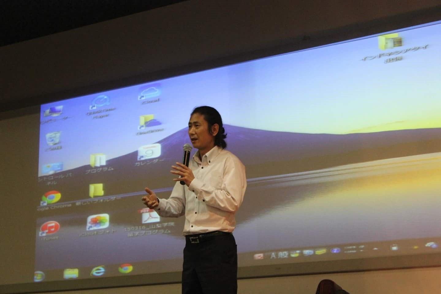 そ の授業を教えたあと、原先生は山梨学院について少し発表してくださいました。山梨学院は山梨県の甲府市にあります。山梨学院とビヌス大学は姉妹大学ですから、ビヌス大学生の一人だけのために無料な 一年間のプログラムがあるそうです。ビヌス大学の日本学科の三年生は一人この奨学金をもらって、山梨学院で勉強しています。今、山梨学院でインドネシアの留学生は3人います。彼らは山梨学院で の生活のビデオを作ってくれました。