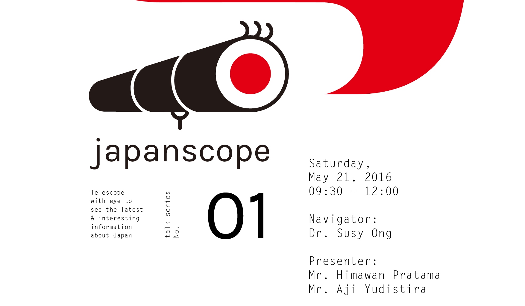 Japan Scope merupakan sebuah event mini seminar dimana kalian dapat melihat penelitian-penelitian dan “mengintip” Jepang melalui kacamata para peneliti di Indonesia.