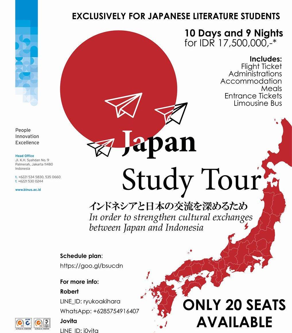 Teman-teman Alumni, HIMJA (Himpunan Mahasiswa Sastra Jepang) Binus University akan mengadakan Study Tour ke Jepang!